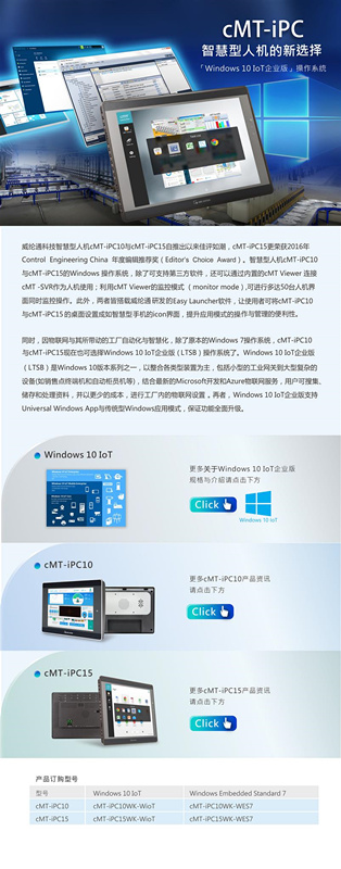 cMT-iPC智慧型人機的新選擇[Windows 10IOT企業(yè)版]威綸觸摸屏代理